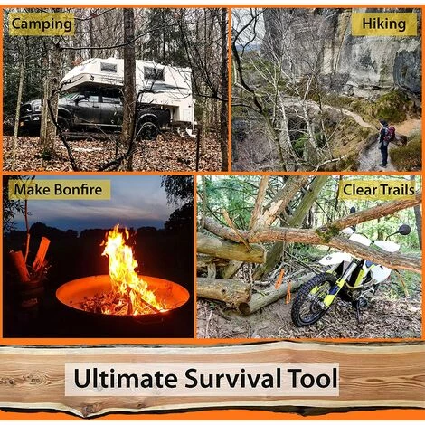 2.La longueur parfaite de 24″ en fait un ajustement parfait pour la plupart. avec pochette et clip de ceinture, fait un excellent cadeau pour la plupart des amateurs de plein air.Léger et compact, cette scie de survie d’urgence est facile à emballer et à emporter.Principalement utilisée pour les abatteuses forestières, le sciage du bois.Idéal pour couper du bois de chauffage dans des situations de survie telles que les campeurs , Routards, pêcheurs, randonneurs, etc.