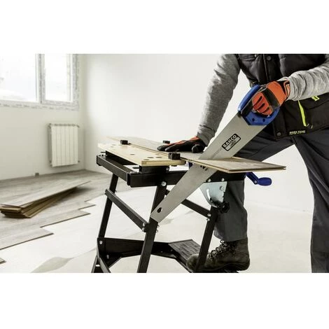 Scie à main professionnelle spécialement conçu pour le parquet et le bois de sol. Pointes de dents trempées, XT-denture et la géométrie particulière des dents garantissent une longue durée de vie et des coupes rapides. Poignée à 2 composants vissée de 45° et 90° marquages approximative peut être utilisée. Ce texte a été traduit par une machine.