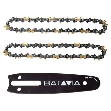 Préparez-vous à commencer avec cet ensemble de pièces de tronçonneuse ! La barre BATAVIA 7063646 et les chaînes 7063765 sont une combinaison idéale pour travailler préparé avec la Nexxsaw! Les chaînes et les lames de scie sont des pièces d’usure, il est donc important de toujours les avoir en stock. Avec cet ensemble de pièces de tronçonneuse TB_7063765, votre travail ne doit jamais s’arrêter longtemps. Compatible avec la tronçonneuse FERREX d’Aldi ! Cet ensemble de pièces de tronçonneuse est compatible avec la tronçonneuse FERREX d’Aldi, si vous avez une scie FERREX, vous pouvez également utiliser ces pièces ! Données techniques de la chaîne :- Liens d’entraînement : 32- Pas : 1/4″ Qu’y a-t-il dans le paquet ? * 1x lame de scie 7063646 pour la Nexxsaw * 2x chaîne 7063765 pour la scie Nexxsaw Commandez directement en ligne Prêt à ajouter ce kit de pièces de tronçonneuse à votre collection d’outils ? Ensuite, vous pouvez passer une commande chez nous directement en ligne. Vous bénéficiez immédiatement de notre livraison ultra rapide et de notre excellente garantie. BATAVIA Des outils de qualité innovants à un prix attractif ? Chez Batavia, nous développons des produits innovants et respectueux de l’environnement pour un usage professionnel et bricoleur. Les bons outils pour votre travail facilitent la vie et garantissent une finition professionnelle. « BATAVIA : Des outils pour construire !