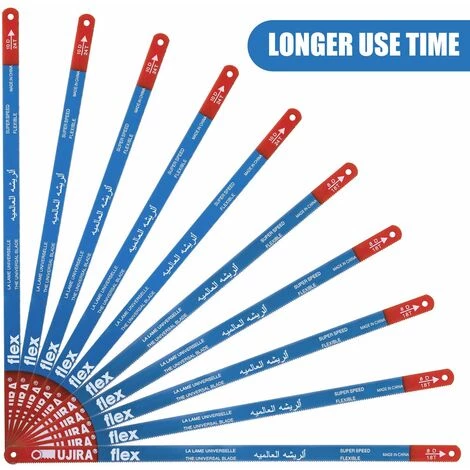 Polyvalent : ces lames de scie à métaux 24 TPI offrent la vitesse rapide d’une scie de 12 pouces pour couper des produits en acier et en métal ; les lames de 18 TPI sont plus lentes que les dents fines d’une scie à métaux de 24 TPI, et les lames de 18 TPI peuvent être utilisées pour couper des produits en bois et en plastique, vous pouvez choisir en fonction de différents besoins.