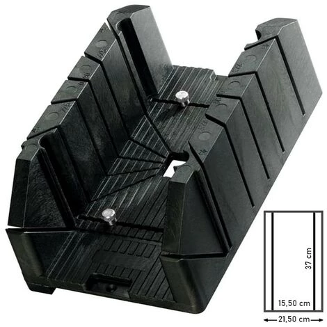 L. 37 x l. 15,5 x H. 12,5 cm Découpe en angles de 0°, 90°, 45° et 22,5° avec vis de fixation
