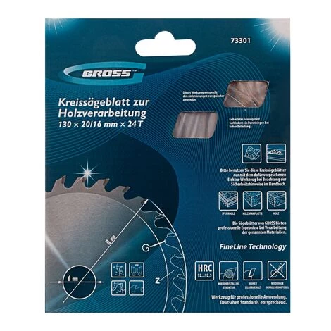 La lame de scie Gross 73301, Ø130 x 20 mm, avec 24 dents et une bague adaptatrice 20/16 mm est conçue pour scier du bois tendre et dur, des panneaux de particules, du MDF et du contreplaqué. C’est un accessoire pour scies circulaires et à onglets avec un diamètre d’alésage de 20 mm, grâce au type universel de dents ATV, il convient à la fois à la coupe longitudinale et transversale des matériaux. Le disque est fabriqué sur un équipement de haute qualité, spécialement conçu pour une utilisation professionnelle et l’exécution d’une grande quantité de travail. Les avantages de 24 grandes dents permettent une coupe rapide et précise des matériaux. La bague d’adaptation vous permet de modifier indépendamment le diamètre d’alésage si nécessaire et d’installer le disque sur un outil électrique avec un ajustement de 16 mm. Les plaquettes de coupe sont en alliage K10 avec des additifs spéciaux Ceratizit d’une dureté de 91 HRA, ce qui garantit leur résistance à l’usure et leur durée de vie maximale. La soudure contient une quantité importante d’argent, elle fixe solidement les plaques de carbure au corps du disque. Les arêtes de coupe ont été affûtées automatiquement en plusieurs étapes, offrant un sciage de haute qualité. Le corps est en acier à outils 65Mn et traité thermiquement, il résiste donc aux charges dynamiques. Des rainures de compensation réalisées au laser permettent de réduire considérablement la déformation du disque et d’obtenir une coupe régulière. il est donc résistant aux charges dynamiques. Des rainures de compensation réalisées au laser permettent de réduire considérablement la déformation du disque et d’obtenir une coupe régulière. il est donc résistant aux charges dynamiques. Des rainures de compensation réalisées au laser permettent de réduire considérablement la déformation du disque et d’obtenir une coupe régulière.