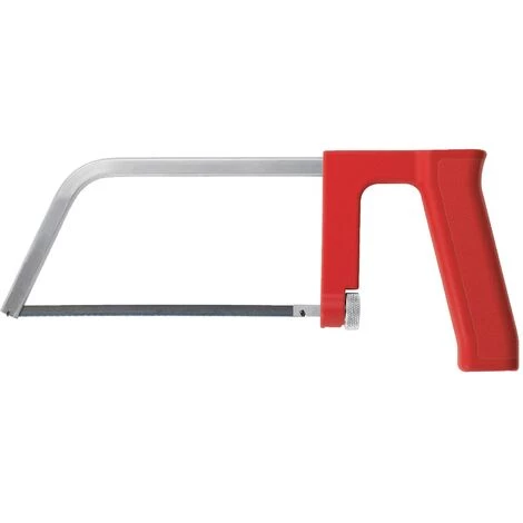 en acier plat 10 x 5 mm, galvanisée brillante · avec poignée plastique ergonomique renforcée de fibres de verre · 65 mm de hauteur vu chambre · tension de la lame réglée à travers de l’écrou moleté