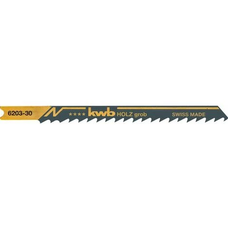 Lames de scies sauteuses, acier carbone HCS trempé, denture affûtée en croix et en dépouille, coupes rapides et propres, avec dent à entailler plongeant directement dans le matériau, pour bois, panneaux agglomérés, de menuisier et de fibres, matières plastiques souples.