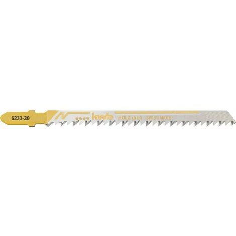 Lames de scies sauteuses, acier carbone HCS trempé, denture affûtée en croix et en dépouille, coupes rapides et propres, avec dent à entailler plongeant directement dans le matériau, pour bois, panneaux agglomérés, de menuisier et de fibres, matières plastiques souples.