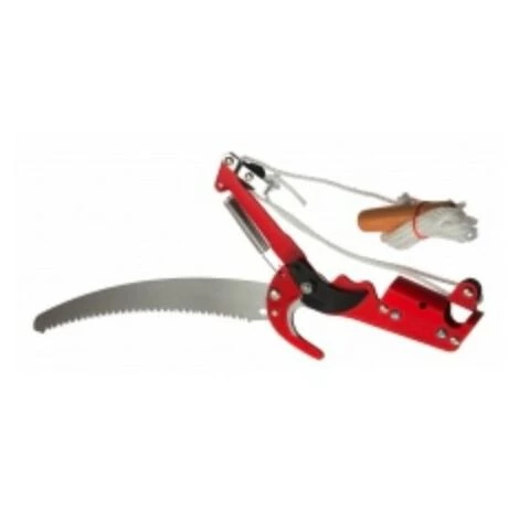 Corps aluminium léger et résistant, emmanchement a serrage par vis. Équipé d’une lame de scie d’élagage a denture triple affûtage croisé et d’une lame de sécateur actionnée à l’aide d’un levier et d’un corde.