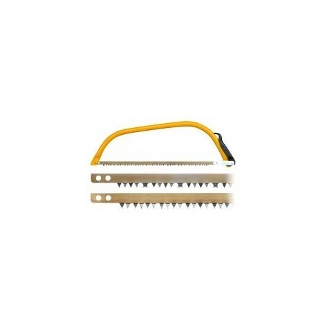 Montant tubulaire en acier avec levier de tension de la lame sur l’arrière. Livrée avec une lame en acier trempé à denture américaine pour la coupe de tous les bois secs, durs ou verts.