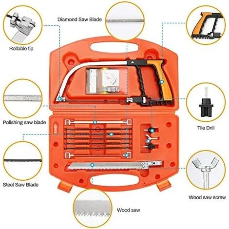 【Multifonctionnel et flexible】 Cette scie à main 15 en 1 peut répondre à vos besoins – Les lames de rechange répondent à tous vos besoins – Avec 7 lames de scie à métaux universelles, 2 lames de scie à métaux diamantées, 2 perceuses, 1 lames à bois à vis, une scie à arc, des instructions. Ce kit est parfait pour un usage domestique ou comme cadeau pour les bricoleurs.