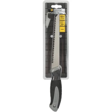 Cette scie à guichet de Sencys est idéale pour couper des planches larges, telles que des plaques de plâtre. La scie a une poignée souple et une densité de dents de 7 TPI (dents par pouce).