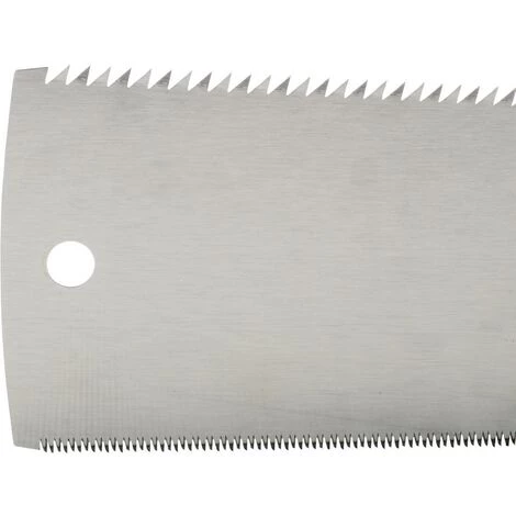 Scie coupe tirante double fil, pour coupe fine, croisée, d´angle. L’action tirante tient compte d´une lame mince (0.50mm), créant un minimum de mouvement (trait de coupe 0.75mm) et donc exigeant moins de force. Denture extra fine Hard Point sur un côté de la lame, idéal pour les coupes fines, d´angle et de travers dans du bois ainsi que des tubes plastiques par exemple. De l´autre côté de la lame, une denture progressive coupe ´déchirante´ de type plus grossier, est conçue pour rendre une coupe excellente sur les fibres de bois. Denture triple tranchants pour coupe rapide et précise