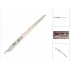 La lame de scie à bois à coupe rapide Shogun a une longueur de lame de 270 mm. La lame de scie trempée par impulsion est particulièrement résistante et dure jusqu’à trois fois plus longtemps que l’acier conventionnel. Les domaines d’application sont tous les types de bois ainsi que le contreplaqué, le bois vert, le bambou et le stratifié. Avec la denture de 2,72 mm, un retrait rapide et propre de la pièce est possible sans aucun problème. La lame interchangeable confirme le concept bien pensé du Shogun, vous n’avez donc qu’à le remplacer lorsqu’il est usé au lieu d’acheter une nouvelle scie. Une longue tradition de scies est associée au pays de fabrication du Japon, la qualité le confirme.