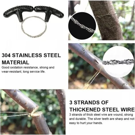 Scie à fil d’urgence sûre : cette chaîne portable bidirectionnelle avec deux poignées et une bande de rotation à 360 degrés à l’extrémité. Facile à utiliser : avec une tronçonneuse et deux poignées annulaires, vous pouvez facilement couper l’objet en tenant les deux poignées et en tirant la scie vers l’avant et l’arrière. Flexible et léger, facile à transporter.