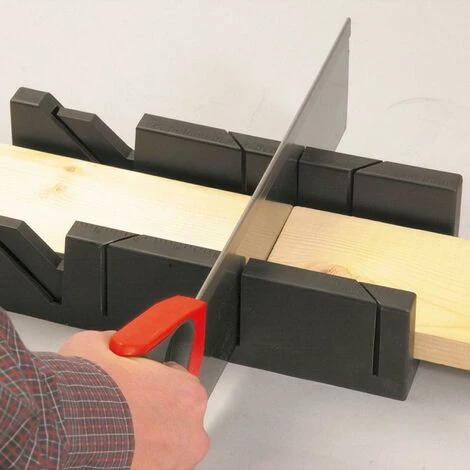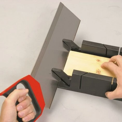 Scie arrière en acier avec dents serrées et double affûtage Angle de coupe 45° et 90° Poignée ergonomique antidérapante Base millimétrée avec trous de fixation Dimensions 30 x 14 x 8 cm. Longueur de lame : 35 cm Hauteur de coupe : 5,7 cm